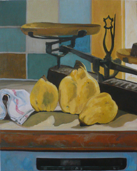Presque déçue d’avoir vendu si vite le tableau des coings dans la cuisine, une envie subite de le repeindre avant qu’il ne parte pour en garder une trace un petit moment encore…